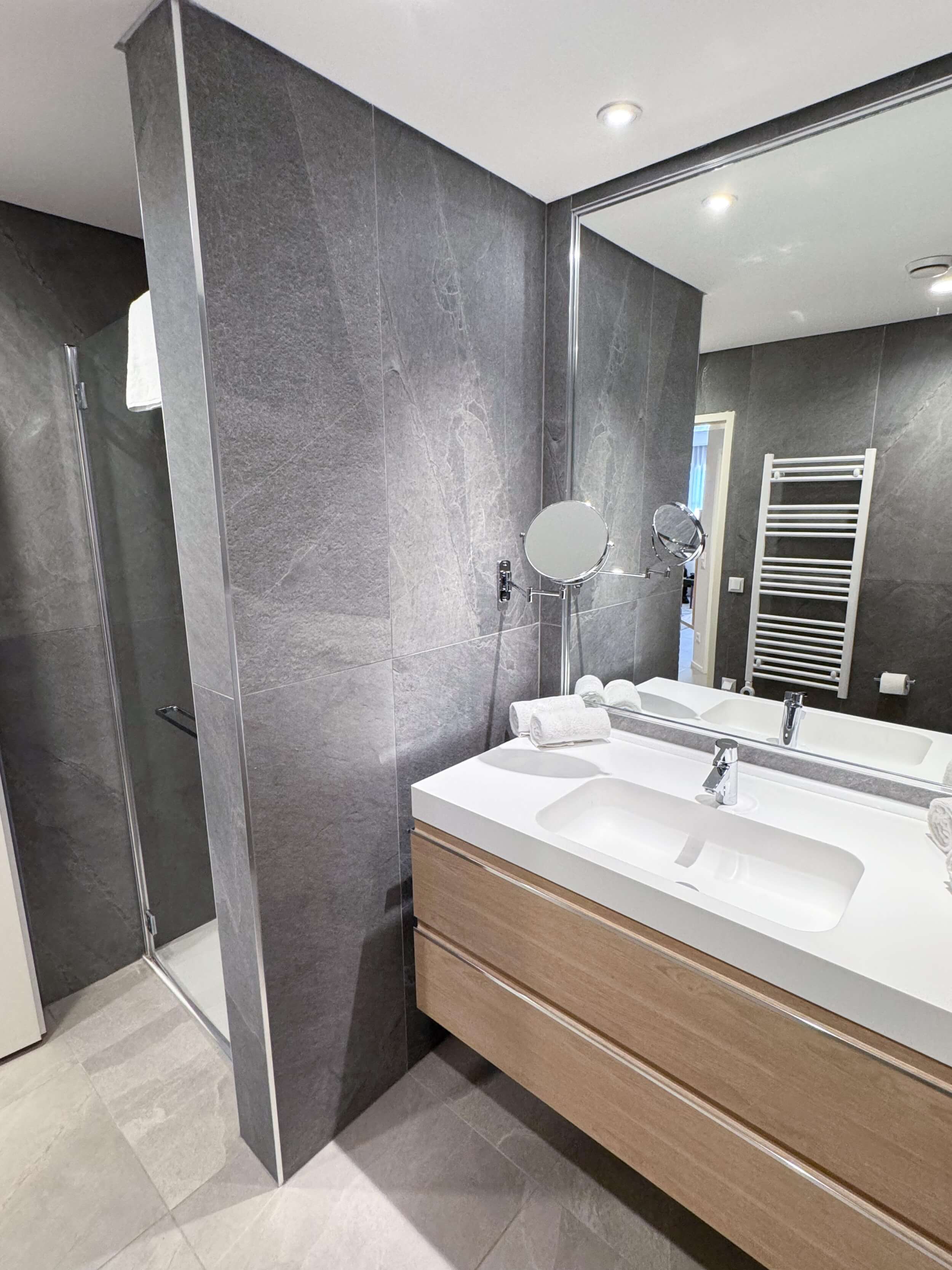 Dieses helle Apartment überzeugt durch einen offenen Koch- und Wohnbereich, der neben gemütlichen Stunden auch Platz für zwei weitere Schlafgäste bietet. Ein separates Zimmer sowie die sonnige Terrasse schaffen Rückzug und Freiraum für modernes Wohnen im kompakten Design.